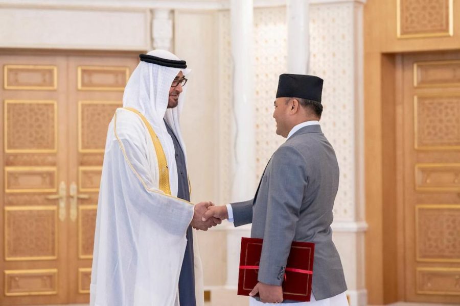 आबुधावी । युएईका लागि नेपालका राजदूत तेजबहादुर क्षेत्रीले बुधबार युएईका राष्ट्रप्रमुख शेख मोहम्मद बिन जायद अल नयन समक्ष आफ्नो ओहोदाको प्रमाणपत्र प्रस्तुत गरेका छन् ।