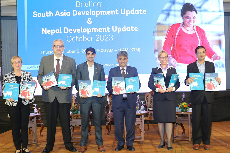 नेपाल आर्थिक पत्रकार समाज (सेजन) र काठमाडौं विश्वविद्यालयसँग सहकार्य गर्दै विश्व बैंकले दक्षिण एसियाली विकास अपडेट र नेपाल विकास अपडेट प्रतिवेदन सार्वजनिक गरेको हो । विश्व बैंकले ६–६ महिनामा यस्तो प्रतिवेदन सार्वजनिक गर्छ । आयात प्रतिबन्ध हटाइनु, पर्यटनमा फर्कंदो उत्साह र मौद्रिक नीतिमा क्रमशः गरिएको खुकुलोपनलगायत कारण नेपालको अर्थतन्त्रमा सुधार आउने विश्व बैंकको प्रक्षेपण छ । सन २०२५ मा नेपालको अर्थतन्त्र ५ प्रतिशतले विस्तार हुने अनुमान छ ।