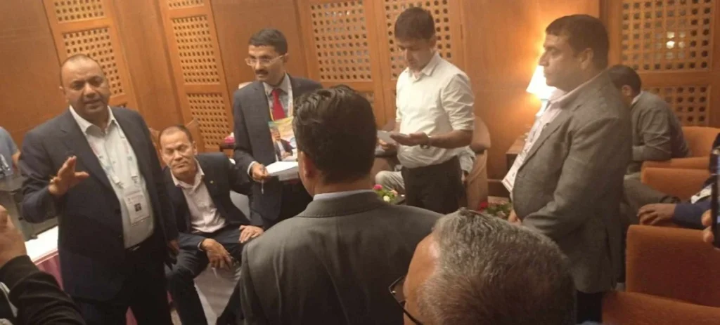 उम्मेदवारले मत हाल्ने भोटिङ सिस्टमको सूचीमा अध्यक्षका तीन उम्मेदवारहरु बद्री केसी, रविना थापा र महेश श्रेष्ठको नाम भएपनि सो लहरमा आरके शर्माको नाम नराखी अर्को पेजमा मात्र पारिएपछि यो तनाव सिर्जना भएको हो । महेश श्रेष्ठलाई समर्थन गर्दै उम्मेदवारी फिर्ता लिएकी रविना थापाको नाम सूचीमा छ ।