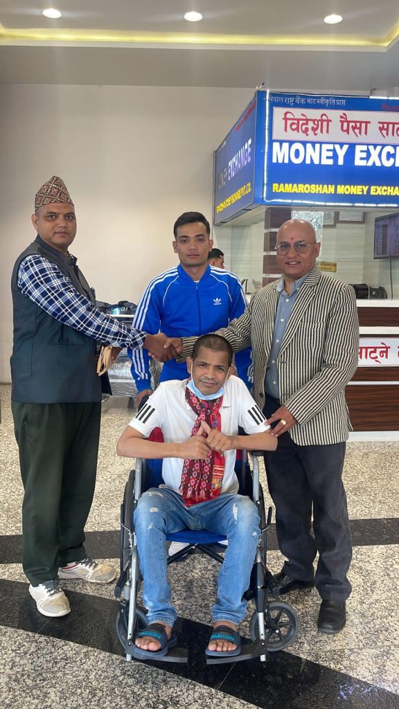 उनको घाटीमा गहिरो चोट लागेको अवस्थामा भर्ना भएको र हाल स्वास्थ्य अवस्थामा क्रमिक सुधार भएकोले नेपाल पठाउने खर्च तथा बिरामी सहित बिरामी सगैं रेखदेख जिम्मा लगाएर पठाएको सामाजिक सन्जाल टिकटक मार्फत चर्चित नमराज पाण्डे ( फुलेबुढा)ले बताए ।