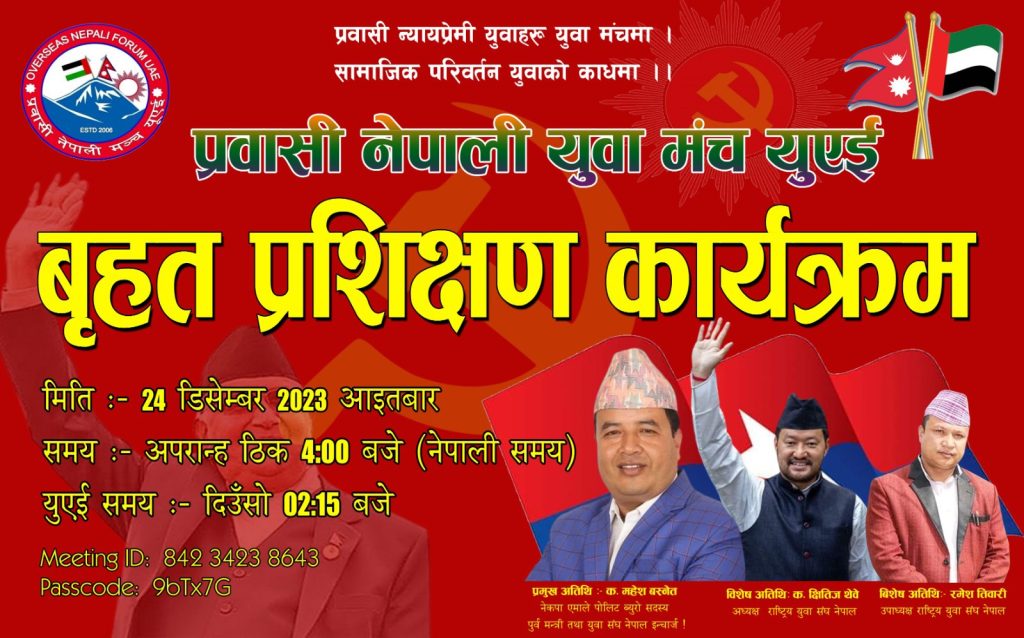 कार्यक्रममा प्रवासमा रहेका युवाहरुलाई प्रशिक्षण दिदै नेपालमा विज्ञ युवा परिषद मार्फत मिसन नेक्स्ट इलेक्सन अभियान सन्चालन गर्न लागेको युवा संघ नेपालका अध्यक्ष क्षितिज थेवेले उल्लेख गरे ।