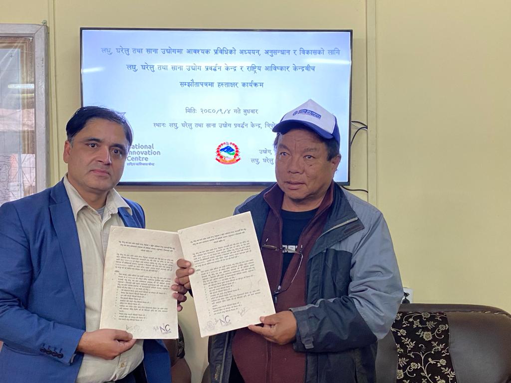 हालखबर अनलाइन । घरेलु र साना उद्योग सम्बन्धी प्रविधिको अनुसन्धान र विकासका लागि लघु, घरेलु तथा साना उद्योग प्रवर्द्धन केन्द्र र राष्ट्रिय आविष्कार केन्द्रबीच समझदारी भएको छ।