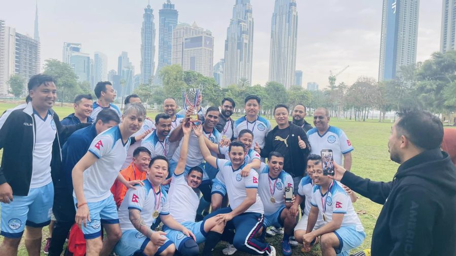दुबई । दुबईमा भएको मैत्रिपूर्ण फुटबल प्रतियोगितामा एनआरएन युएईले उपाधी चुमेको छ । नेपाली समाज युएई द्वारा आयोजित प्रतियोगितामा युएनएफएलाई सडन डेथमा हराउदै एनआरएनले उपाधी चुमेको हो ।