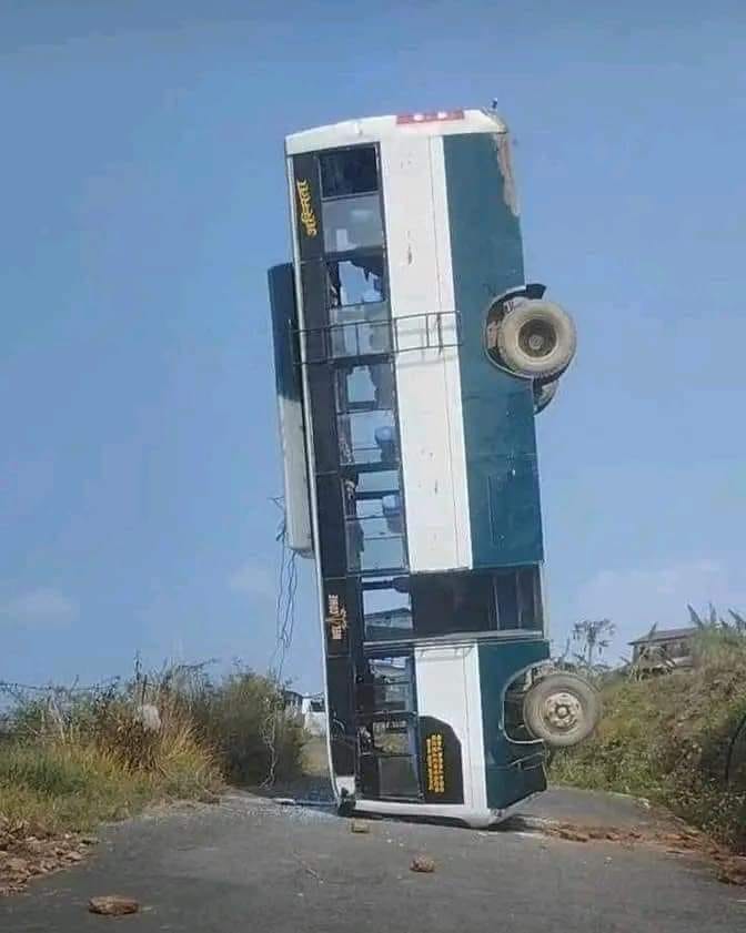 बस दुर्घटना भएको तस्वीर र भिडियो सामाजिक सञ्जालमा भाइरल भएको छ । बस सडकमा ठाडै उभिएको छ । त्यही तस्वीर र भिडियो सामाजिक सञ्जालमा भाइरल भएको हो ।