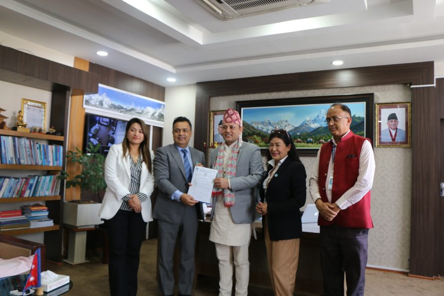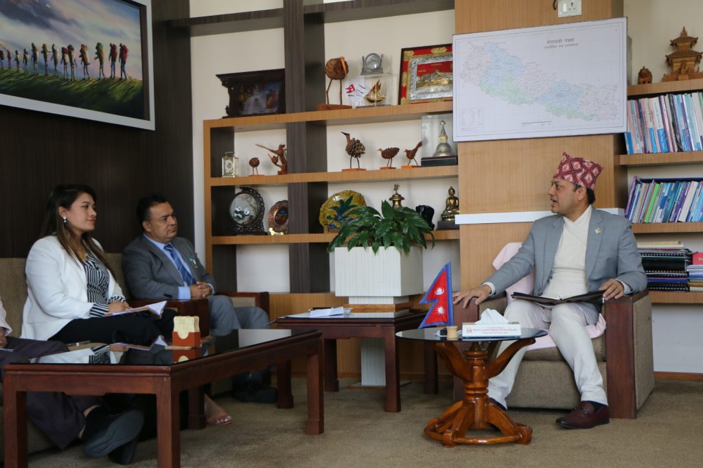 काठमाण्डौ । गैरआवासीय नेपाली संघका प्रतिनिधिले श्रम, रोजगार तथा सामाजिक सुरक्षा मन्त्री डोलप्रसाद अर्यालसँग मन्त्रालयमा भेटघाट गरेका छन् । भेटका क्रममा वैदेशिक रोजगारीलाई सुरक्षित बनाउन र मुलुक भित्रै रोजगारी सृजना गर्नका लागि संघको संयन्त्रलाई सदुपयोग गर्न संघका अध्यक्ष डा.केसीले आग्रह गरे ।
