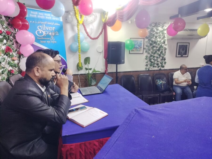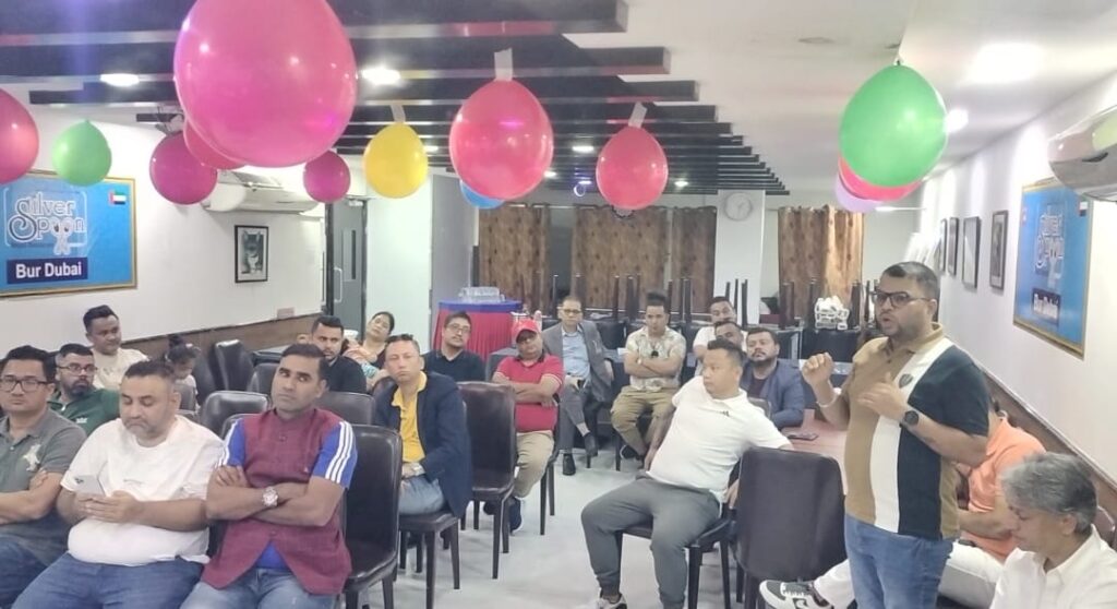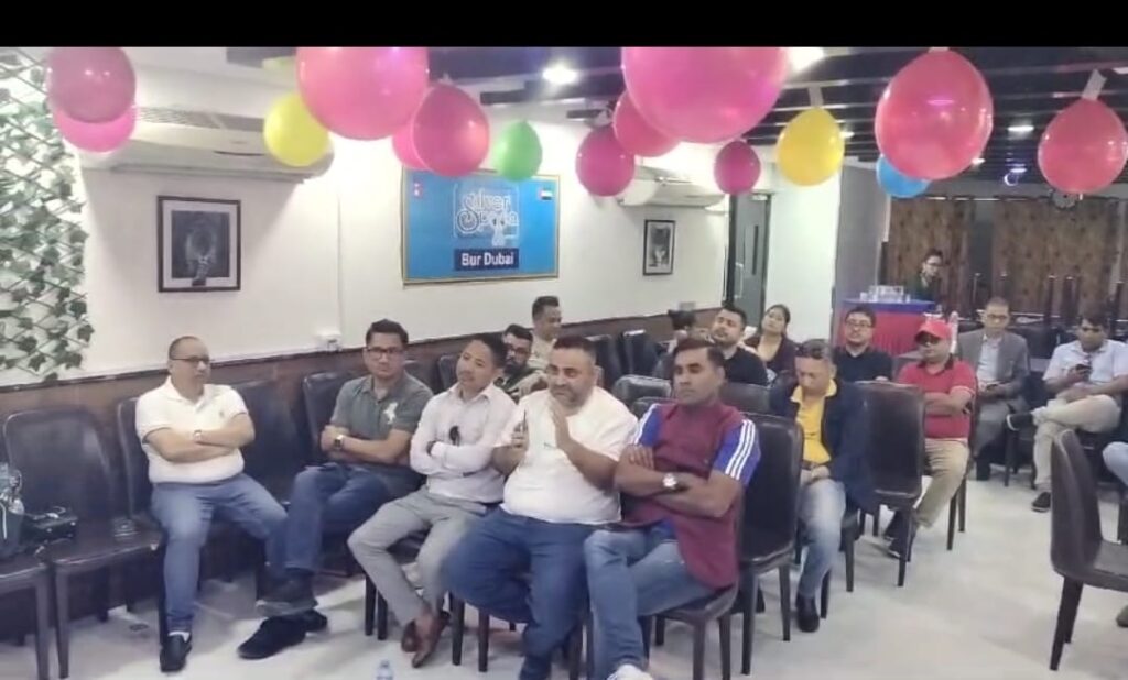 दुबईको सिल्भर स्पुन नेपाली रेस्टुरेन्टमा भएको कार्यक्रमको स्थानीय सम्योजन बैंकका युएई प्रमुख प्रकाश पौडेलले सम्योजन गर्नुभएको थियो । कार्यक्रममा एनआरएन युएईका अध्यक्ष बिकास शाही, नेपाली समाजका पार्सद अध्यक्ष राम मोक्तान, पत्रकार महासंघ युएई शाखा अध्यक्ष मेघ्राज सापकोटा, जनसंपर्क समितिका शभापती भुवानी प्रसाद तिमील्सिना , जन प्रगतिशिल मन्च एसिया प्यासिफिकका बाबुराम विश्वकर्मा, व्यवसायी तथा एनआरएन अभियान्ता ठाकुर प्रसाद ढुङ्गाना, नेत्र शर्मा, एचएसबीसी बैंक युएईका लीगल हेड राजकुमार न्यौपाने, लगायत दुईदर्जन धेरै सामाजिक अगुवाहरुको उपस्थिती थियो ।