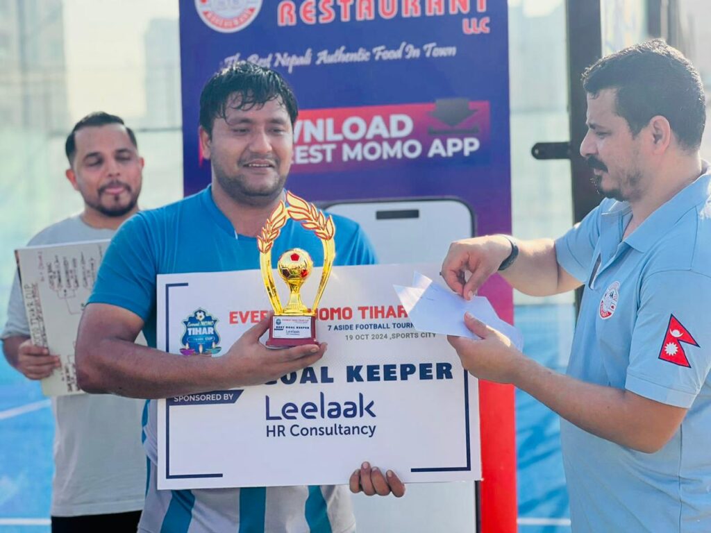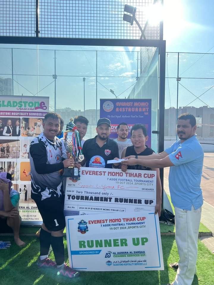 प्रतियोगितामा उत्कृष्ट खेलाडीको रुपमा लालीगुरासका रोशन तामाङ,उत्कृष्ट गोलरक्षक नवबुद्दका केशब मानन्धर,र प्रतियोगिताको अनुशासित क्लबको रुपमा फूलबारी फूटबल क्लब र सोही क्लबका राकेश हमाल सर्वाधिक गोल गर्ने खेलाडी बने भने नवबुद्दका नारायण दाहाललाई बेस्ट अफिसियलले सम्मान गरिएको थियो । अजमान र सारजाहको सीमामा पर्ने एमके एकेडेमीको खेल मैदानमा भएको प्रयोयोगितामा झन्डै ५ सय जना नेपाली दर्शकको उपस्थिती थियो ।