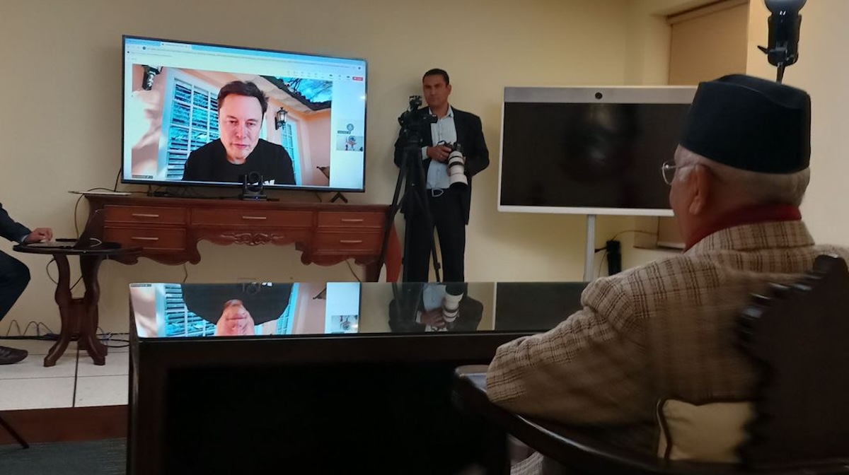 एलन मस्कसँग कुरा गरिरहेको छुु भन्दै प्रधानमन्त्री ओलीले फेसबुकवालमा भिडियो च्याटको तस्बिरसमेत पोस्ट गरेका छन् । उनीहरुबीचको कुराकानीको विषय भने खुलाइएको छैन ।