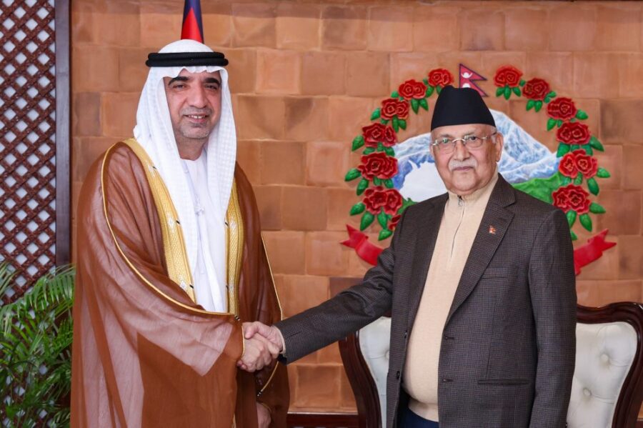 काठमाडौ । प्रधानमन्त्री केपी शर्मा ओलीसँग नेपालका लागि संयुक्त अरब इमिरेट्स (यूएई) का राजदूत अब्दुल्लाह अल शम्सीले शिष्टाचार भेट गरेका छन् ।