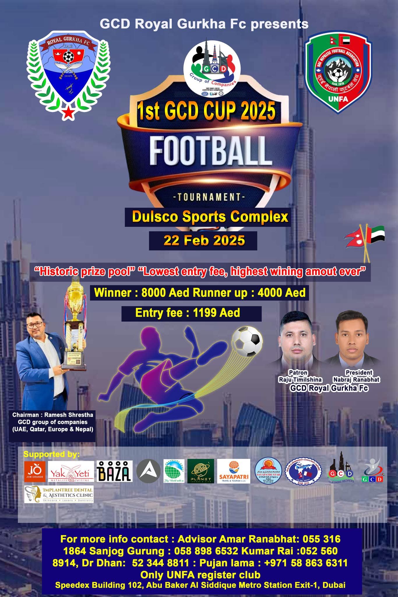यूएईमा प्रथम जीसीडी फुटबल कप २०२५ को आयोजना हुने भएको छ ।