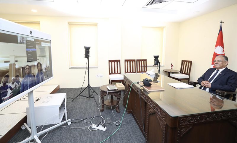बुधबार बिहान पाकिस्तानमा रहेको नेपाली टीमसँग भर्चुअल बैठक गर्दै प्रधानमन्त्री प्रचण्डले जीतका लागि शुभकामना व्यक्त गर्नुभएको हो।
