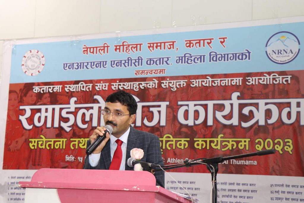 उनले मध्यपूर्वलगायत विश्वाभरिका सामाजिक अभियन्ताहरुको विचार र मन फरक रहला भए पनि नेपालीका लागि नेपाली भन्ने मूल उद्देश्य अनुरुप साझा रूपमा अगाडि बढ्ने बताए ।